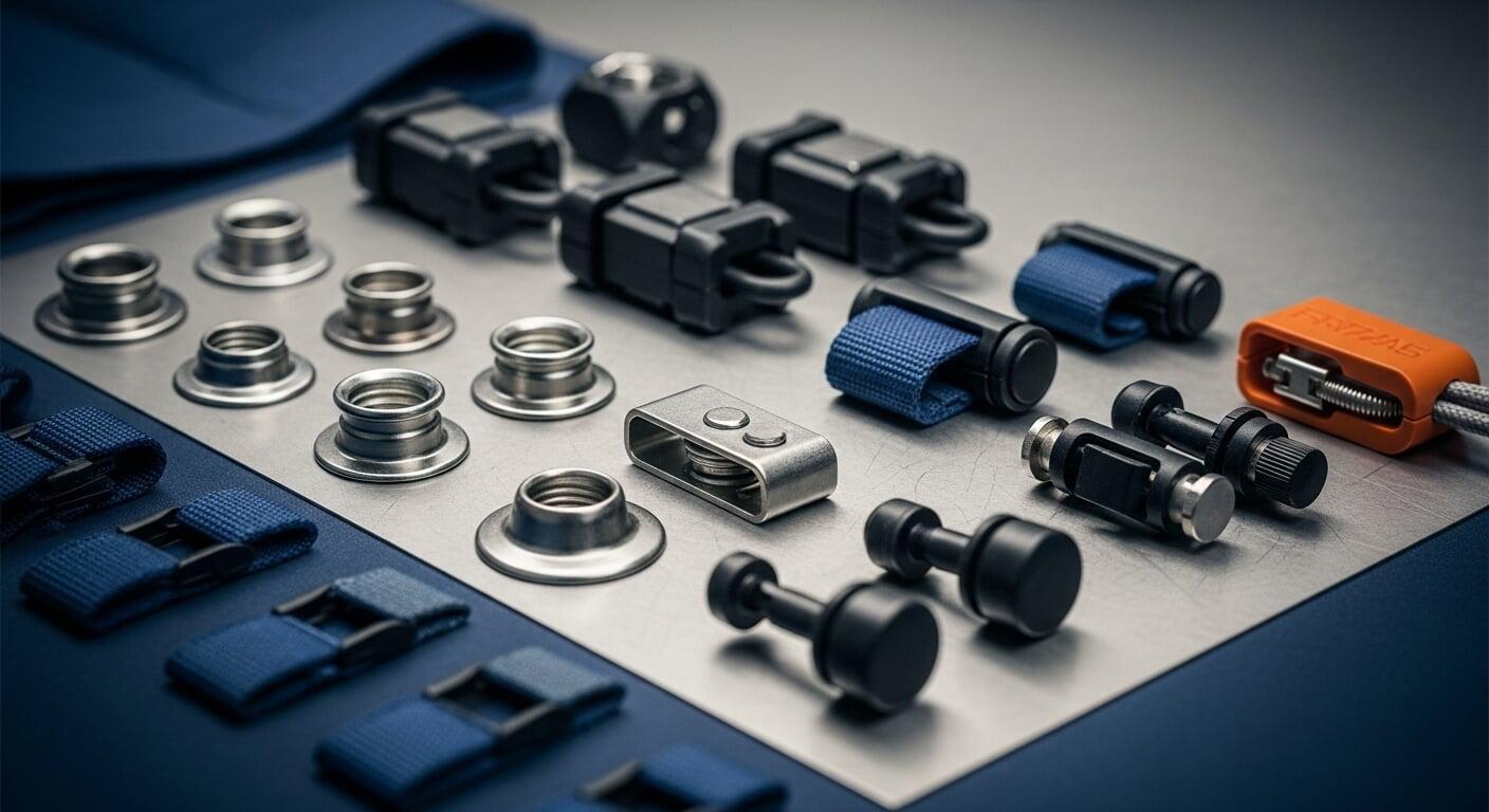 Sujetadores diseñados para prendas ajustables y equipos de protección con cuerdas o elásticos. Garantizan la seguridad del cierre sin derretirse ni perder funcionalidad bajo calor extremo.